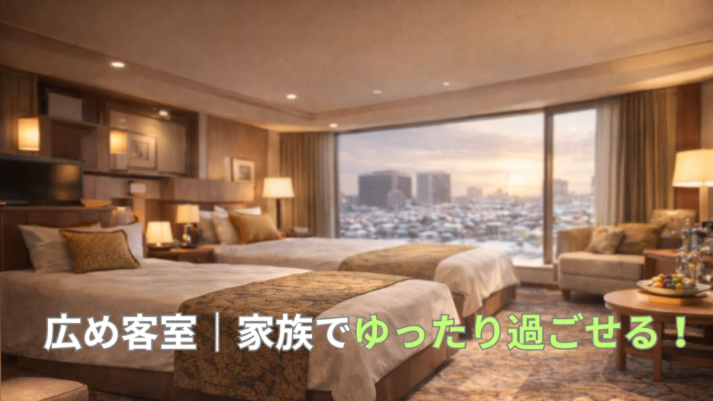 広めの客室(和洋室62㎡など)があり、家族でゆったり過ごせるのが心強いポイント。